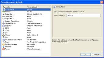 L'installation d'une machine virtuelle est facilitée par des pré-réglages établis en fonction du système que l'on souhaite installer. Les paramètres de configuration déterminent l'allocation de mémoire vive et de disque pour chaque machine virtuelle installée.